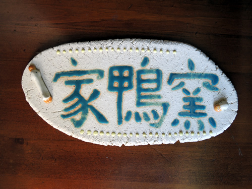 拙宅ポストの上に、家鴨窯の表札を掲げました!