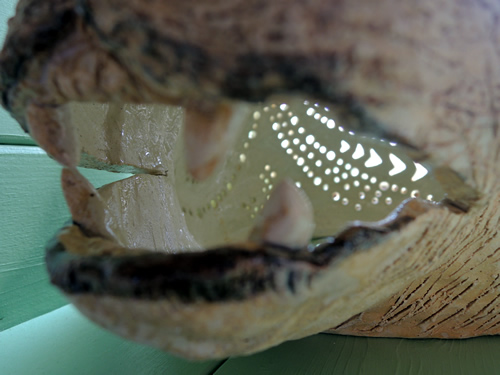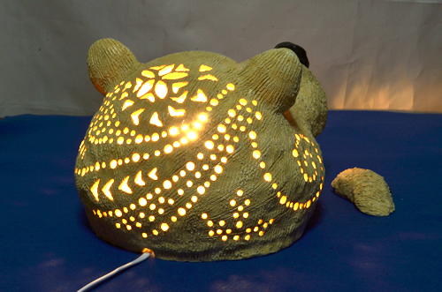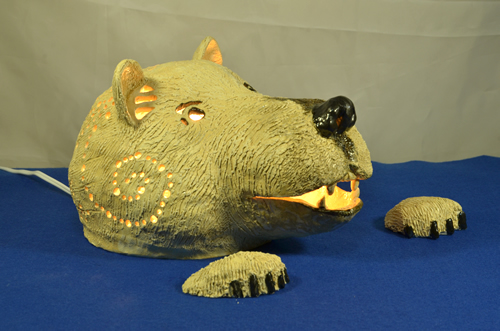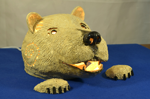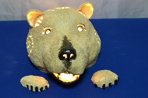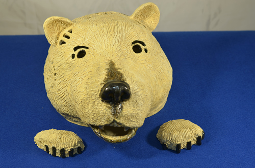 このシロクマは、大変おおきく、頭にぷすぷすと穴があいています。