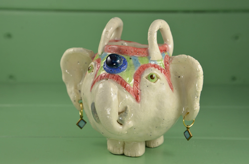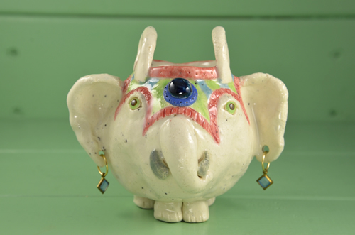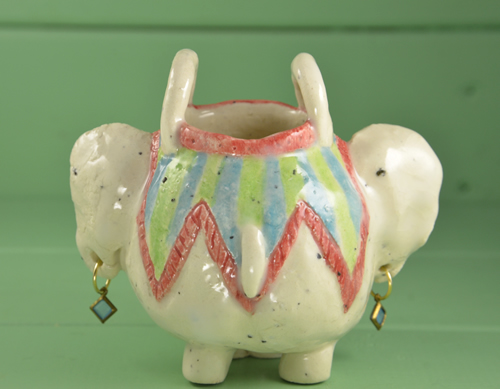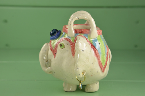 楊枝たての象、4頭目。在庫は、この1頭。 踊りだしそうなお洒落して♪ 何か心が温かくなる優しさがありませんか。 |