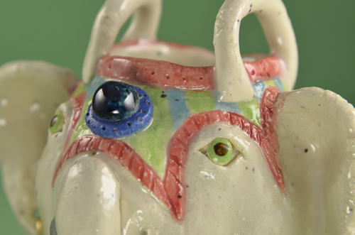 まずは、象からご紹介。 こちら、白土に呉須で色づけした爪楊枝たてです。 |