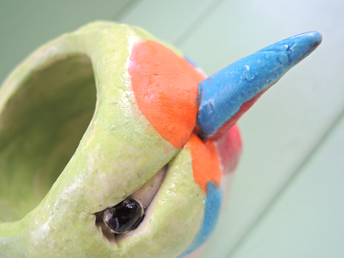 残念なことに、素焼き後に頭の飾りが折れまして。。