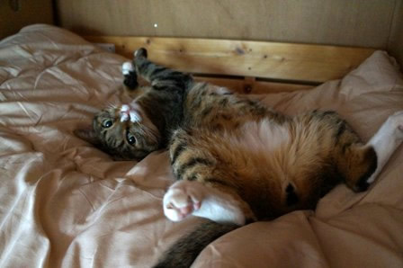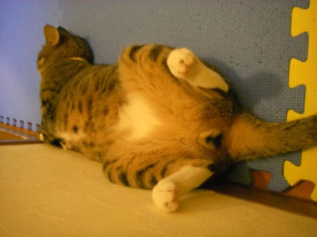 「チャームポイントはキューピットのハートの矢みたいになったそこだけ黒いおタマタマ(18禁映像が交じっております……汗)と脱げかかった手袋みたいな白い前足のソックスかな?」