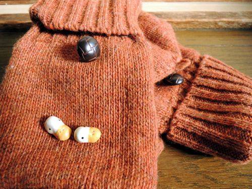 例えば金属のボタンを木にするとか、プラスチックのを水牛とか貝にするとかです。