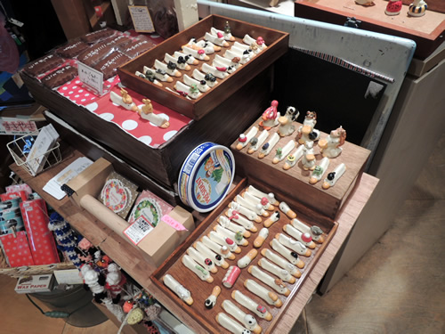 両手に荷物をもったお父さん。店頭に置いていたイキモノ楊枝立てが気になってくださったようで、後からくるご家族に「ねーねー面白いよ!」って声かけられて。