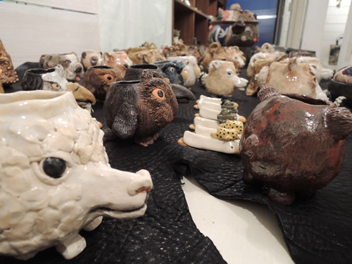 陶芸教室の先生と仲間たちは皆さん一緒にやってきてくださいました。 お教室で楊枝立てを毎週数体ずつ形作る姿をみてきてくれた仲間です^^ |